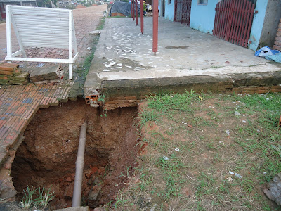 residência que esta em perigo onde uma moradora pode perder uma parte do cômodo de sua casa. As pessoas responsáveis pelos serviços já